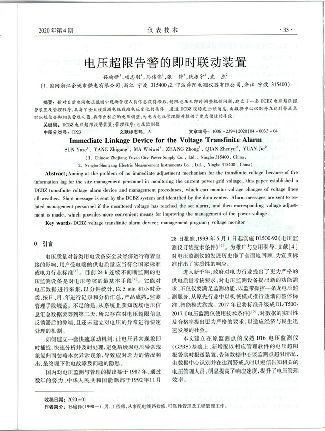 《電壓超限告警的即時(shí)聯(lián)動(dòng)裝置》載于《儀表技術(shù)》2020年第4期